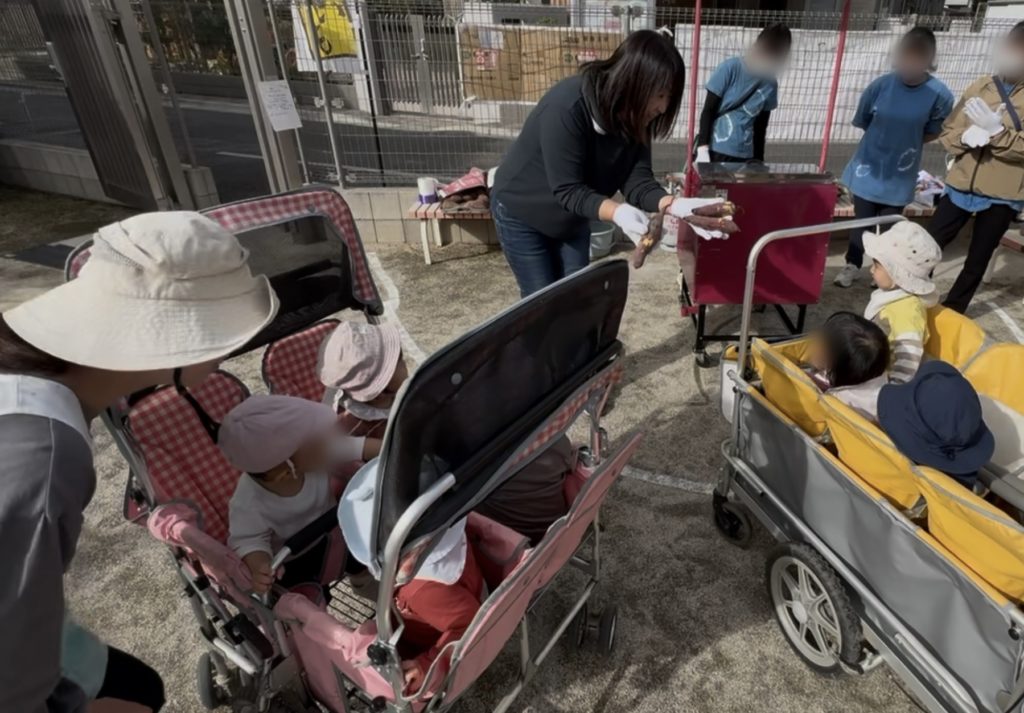 小さいお友だちはお芋を食べたあとに園庭でたくさん遊んでもらいました!