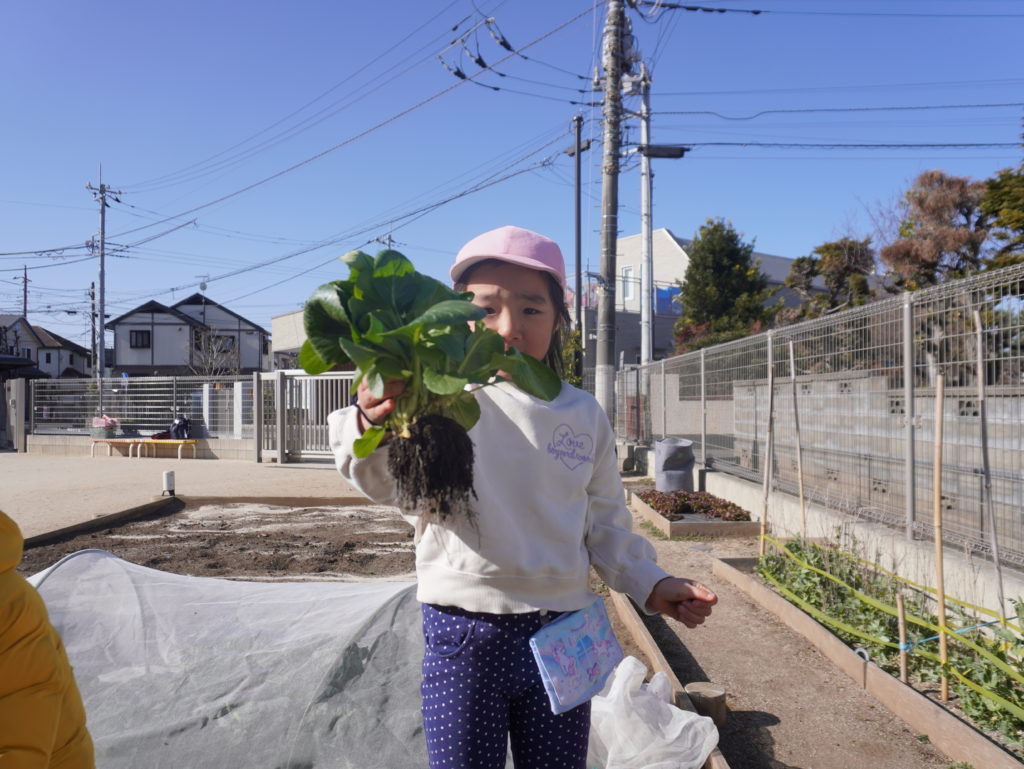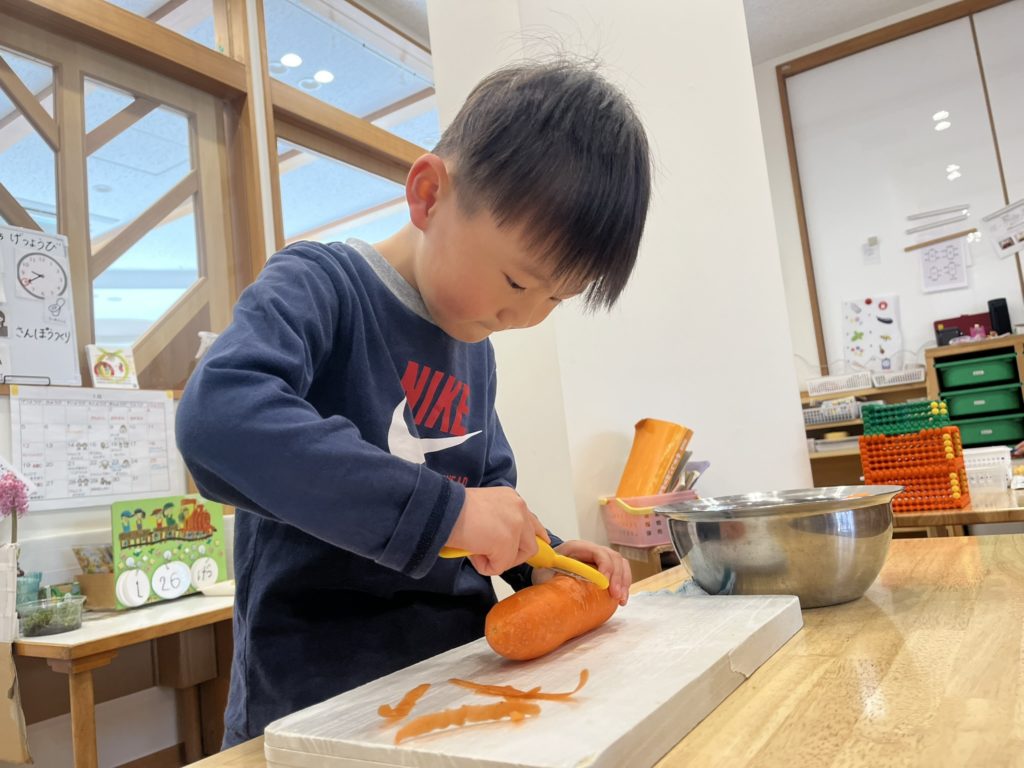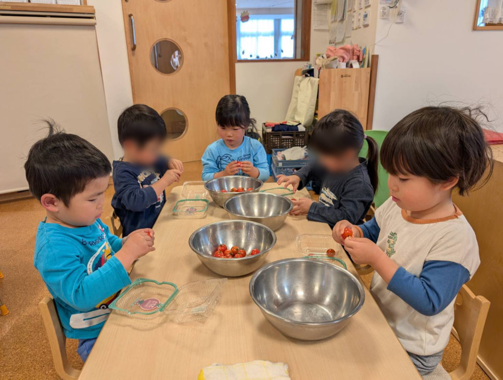 食育は、野菜を見たり触れたり、お手伝いをしながら「食べるって楽しいね」「おいしいね」と言う気持ちを育て、食への興味や「食べる力」に繋がって行きます。